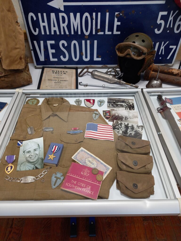 Mercredi 17 septembre, une classe de Terminale du lycée étudiant la spécialité HGGSP a accueilli Simon Deleyrolle accompagné de Denis, son papa, tous deux collectionneurs et connaisseurs passionnés de la Seconde Guerre mondiale pour remémorer notamment la libération de Vesoul le 12 septembre 1944. Simon est le parrain de la tombe de V.Casaretti, soldat américain tué à la Motte le jour de la Libération et enterré au cimetière militaire d’Epinal-Dinozé.