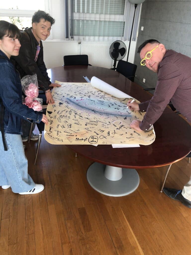 Les élèves de l’école élémentaire ont eux aussi signé avec beaucoup de joie et d’enthousiasme. Leur engagement spontané a donné au projet une dimension particulièrement touchante, réunissant petits et grands autour d’une même cause.
