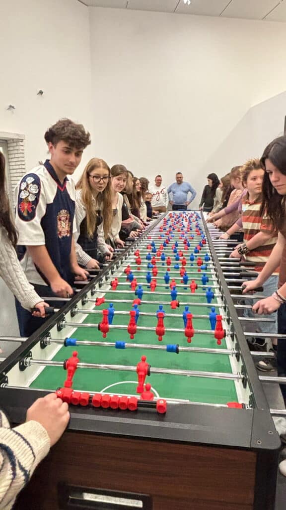 Le séjour a débuté à Metz avec la visite des expositions du Centre Pompidou-Metz. Les élèves ont notamment découvert l’exposition Dimanche sans fin, consacrée à Maurizio Cattelan et à des œuvres issues de la collection du Centre Pompidou.À travers des installations mêlant humour, provocation et regard critique sur la société, cette exposition a suscité de nombreuses réactions. Les élèves ont pu se confronter directement aux œuvres de francis Bacon et ressentir des émotions fortes. Certains ont éprouvé à la fois fascination, malaise et questionnement, mais ont également trouvé des réponses directement face aux œuvres, grâce à l’analyse approfondie menée en cours. Cette confrontation concrète a ainsi renforcé leur compréhension de l’impact émotionnel de l’art.